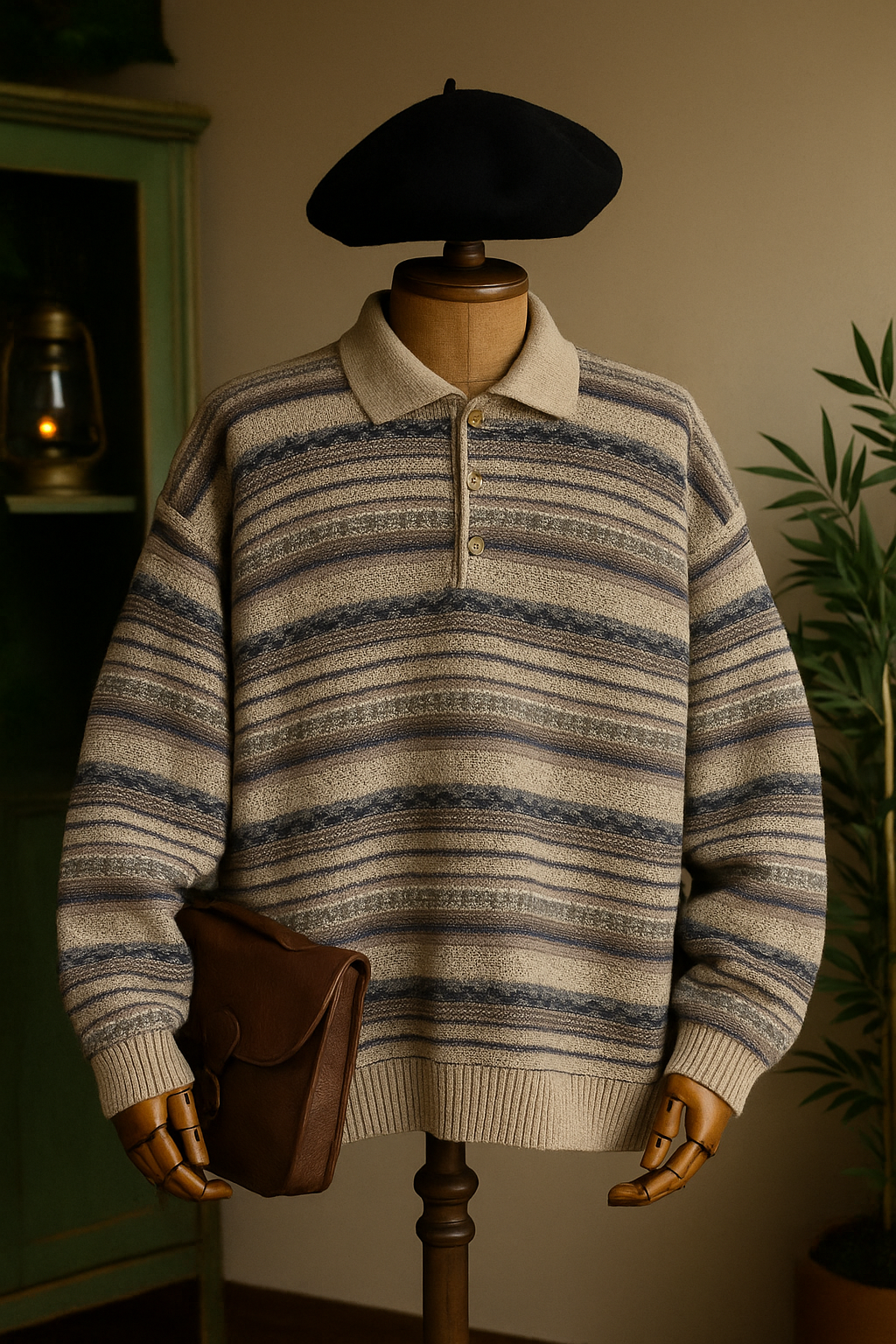 Polo Yaka Bej Wool Kazak